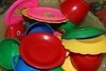посуда: 12 чашек,23 тарелки,12 ложек, 8 подносов